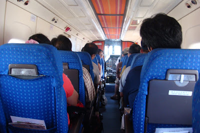 小飛機坐起來果然很剌激,尤其最後要對準跑道準備降落,來個180度大轉彎,機尾的氣流把小飛機惹得一陣晃顫,配上從座椅下方陣陣傳出來的乾冰(?)煙霧,很有fu,真的。短短20分鐘的飛程,一下子就到了。