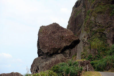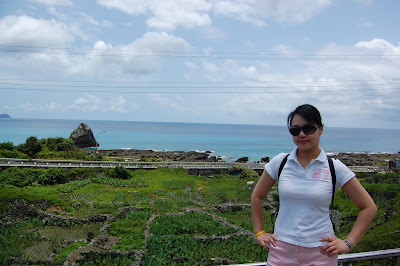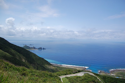 機車安靜滑行通過野銀村,在靠近冷泉(私密景點二)的發呆亭中休息,前望太平洋一望無際,海天相連,後仰看山勢蒼鬱高聳,遺世而獨立。看看午後又一大批烏雲軍團壓境,大慨還是難躲午後雷陣雨侵襲。因此,調整行程,我們今天打算繞南半圈,經過鋼盔岩、龍頭岩、龍門碼頭、青青草原而回到墨泥家。