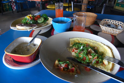 這場雨直到徬晚才稍歇,我們決定早早前去道香星村報到吃晚餐。晚餐當然是「辣子雞丁炒飯」,米飯炒得粒粒鮮明,放上碗豆、洋蔥、大量誠量十足的雞丁,搭配獨特的香料及辣椒絲,果然非常好吃。吃完我們意猶未盡,又在路口的鹽酥雞攤買了一份雞排,再買四瓶啤酒,在蘭嶼第二個夜晚就放縱一下自己,大口吃肉,大口喝酒吧....