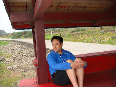 看完了蘭嶼傳統藝術,登上開元港附近的小燈塔,當天風勢強勁,小燈塔上沒有任何欄杆,一站直彷彿就要被風吹落,不得不壓低重心迅速拍照走人,看照片裡凌亂的頭髮就知道風勢有多強勁。